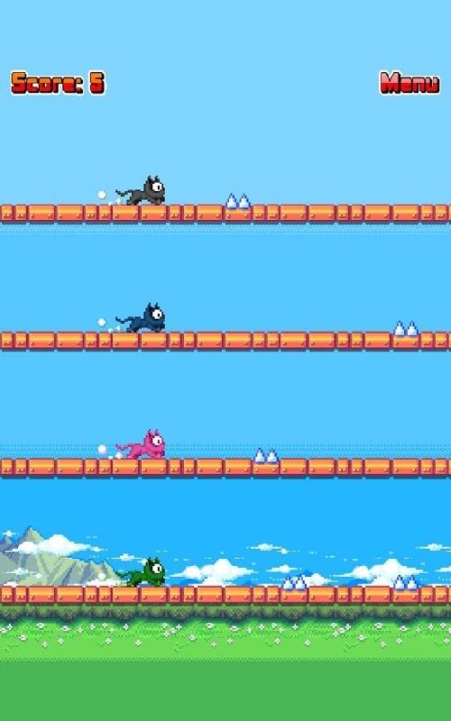 《4只猫 4 Cats》是一款考验你手脑协调的游戏。玩过《一个都不能死》吗?喵星人也决定4只猫一起去冒险~游戏操作简单,分别点击四只猫所属的区域即可让它们跳起来躲过地上的刺。千万要注意哦:四只猫一只都不能死!