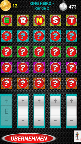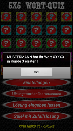 Lösen Sie das Rätsel !Bei dieser Wort-Suche geht es darum, ein sinnvolles Wort mit 5 Buchstaben zu erraten.Dabei helfen Ihnen die eingefärbten Buchstaben weiter. Ein gelber Buchstabe bedeutet, dassdieser im Lösungswort vorkommt,aber nicht an der richtigen Stelle steht. Ist ein Buchstabe grün, so ist er bereits an der richtigen Stelle. Bleibt der Buchstabe hingegen weiß, so hat er mit dem Lösungswort nichts zu tun !Für jedes erratene Wort bekommen sie Punkte und Münzen. Von den Münzen können sie sich Joker kaufen, falls sie Hilfe beim Lösen des Wortes benötigen. Es gibt eine TOP5-Highscoreliste, die die besten Spieler auf Ihrem Smartphone beinhaltet.Desweiteren können sie sich auch Lösungswörter von Freunden eingeben lassen und diese erraten.Mit schöner Musik und lustigen Sounds !Auch für Tablets geeignet !