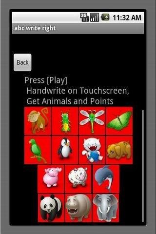 Play and Have Fun while learning to hand-write the letters of the alphabet. You can draw with your finger on the touch screen.ABC Write Right will recognize the letters you have drawn and will give you points and animal pictures as rewards. Based on the latest Gestures and Handwriting recognition algorithms, this App is a great and fun way for kids, adult and students to learn hand-writing letters. The "Learn Mode" will show you how to draw each letter in 5 easy steps. Have lots of FUN with this Educational Game!