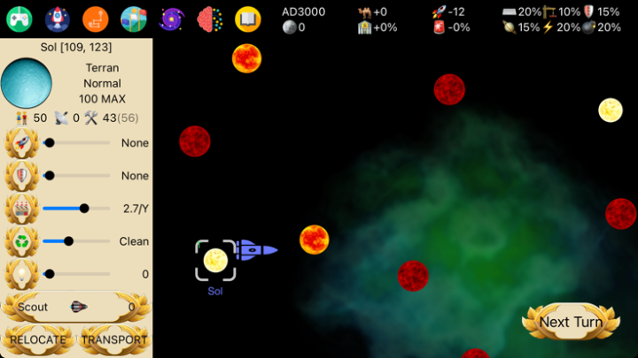 AD3000 是一款回合制 4X 科幻战略游戏,玩家在其中领导十个种族之一,通过外交和征服的结合来统治银河系,同时开发技术、探索和殖民星系。 胜利要么通过消灭所有反对者,要么通过赢得和平统一的投票获得。策略逻辑和用户交互概念的灵感来自原史蒂夫·巴西亚 (Steve Barcia) 的猎户座大师。 大多数图形、音乐和文本材料来自知识共享许可或通用公共许可许可的公共领域。