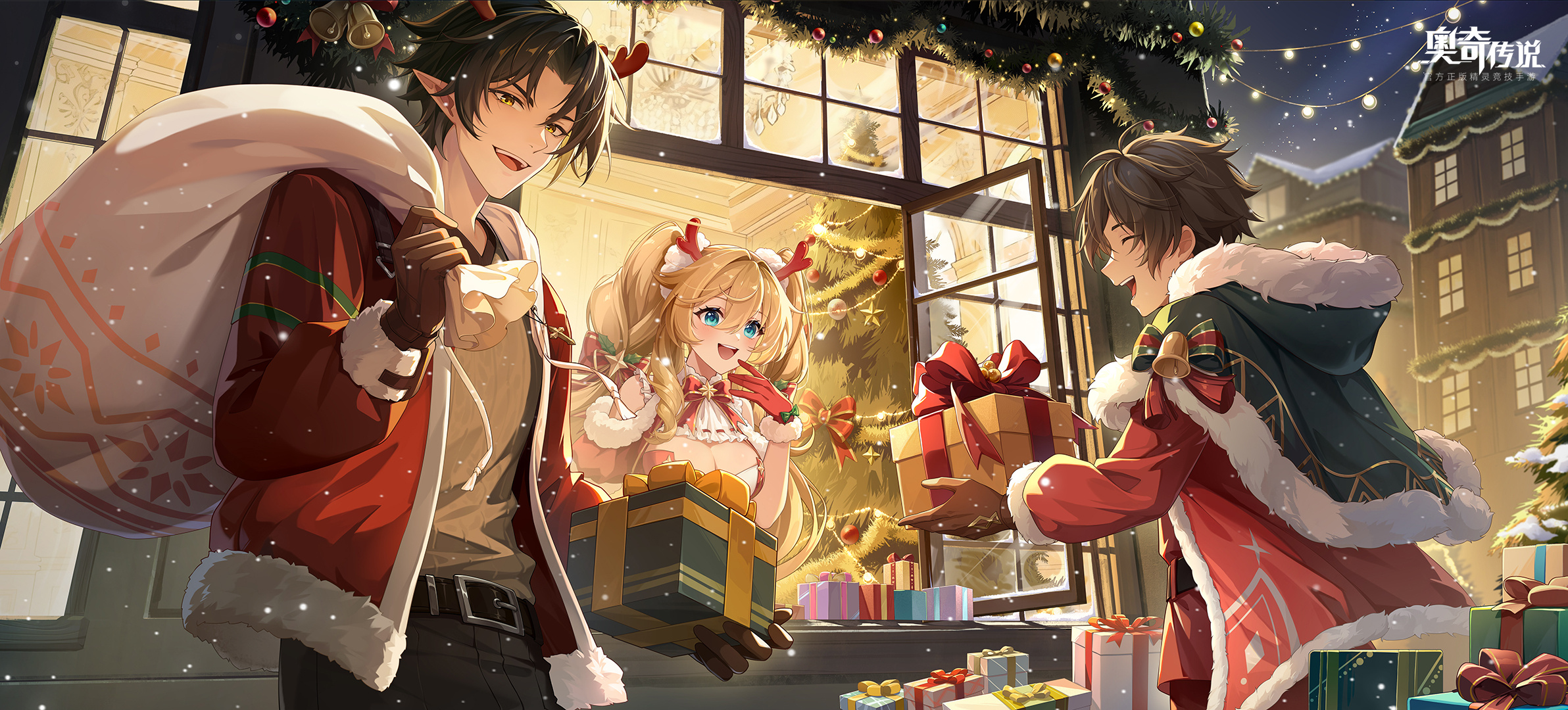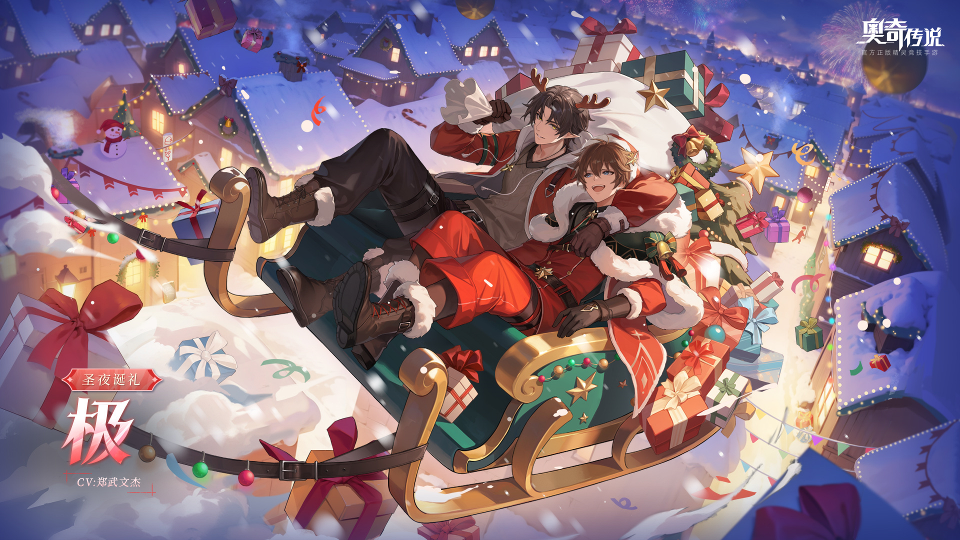 “圣夜的钟声已然敲响,雪白的大地张灯结彩,众人的美梦等候光顾,圣诞老人粉墨登场。驯鹿和雪橇准备就绪,带好礼物清单,出发了,搭档!”
