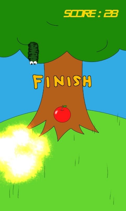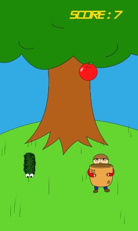Apple and hairy caterpillar falling down from the tree.Tap for change the moving direction and catch the apple.If you catch the hairy caterpillar, game over.