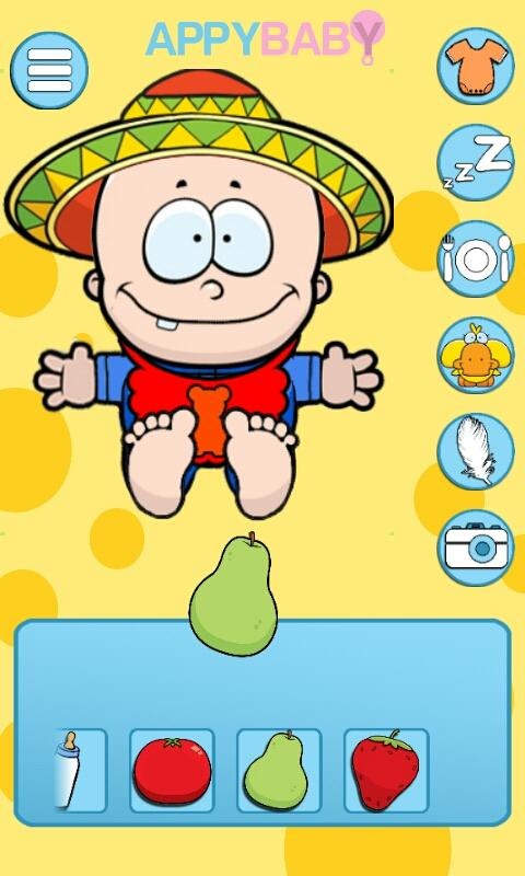 A recipe for an APPY BABY : Feed , clothe and make sure he gets a good sleepThis isn't just a baby this is your baby so make sure he's happy.Appy baby needs special care:Feed - rotate phone to pour milk , shake to shake bottle - no feed babySleep - dim lights & give pacifierMake baby laugh - tickle with feather