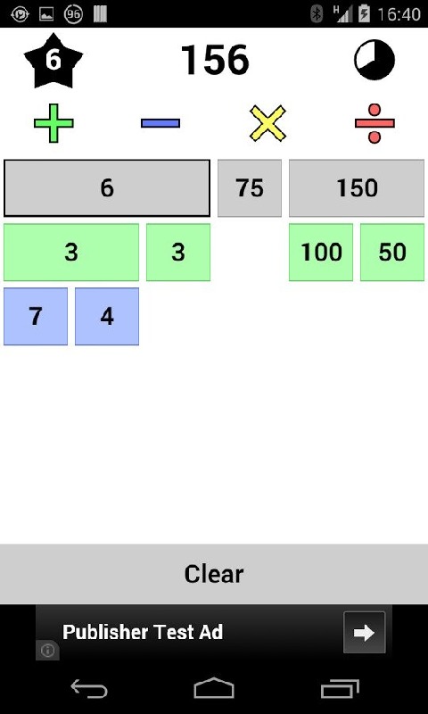 An exciting and very challenging number game! Apply arithmetic operations to reach the target number before the clock runs out!All puzzle combinations have exac...