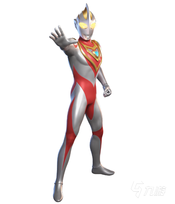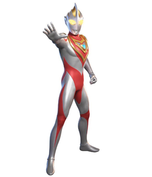 盖亚外表红银交织,给人沉稳与力量感,他是速度和力量兼备的战士,不管是格斗还是光线技都非常基础扎实,他代表的必杀技,会将能量引导到右臂后挥出,打出的流线可以一下子消灭多个敌人,这同时也是其守护地球最为信赖的光线,汲取海洋之光后他能净化成V2,此时除了外观会增添黑色与金色的线条外,力量、速度和防御都得到了飞升,必杀技也更加具有破坏力,能面对更为强大的敌人。