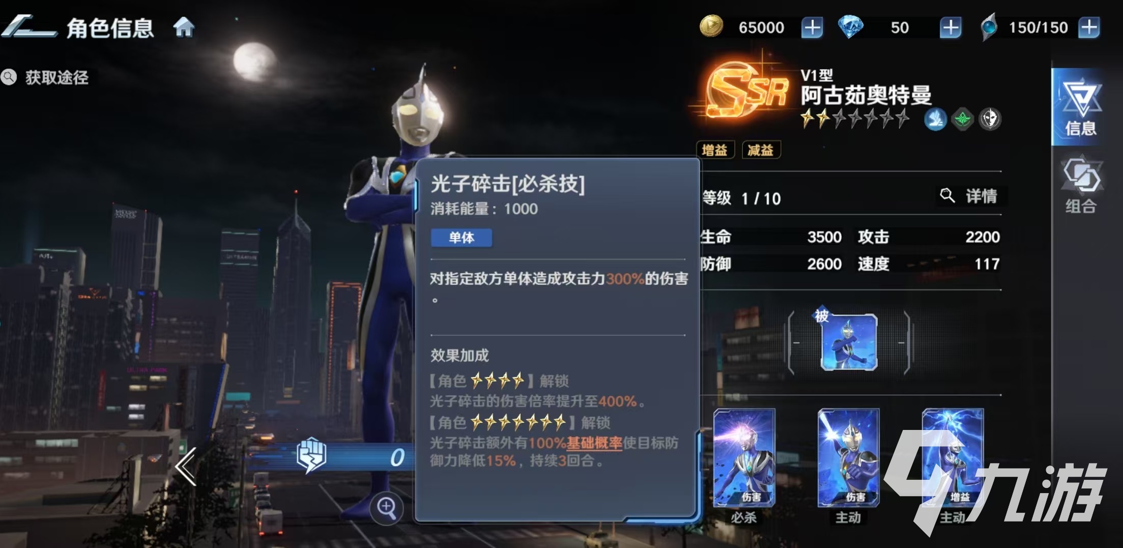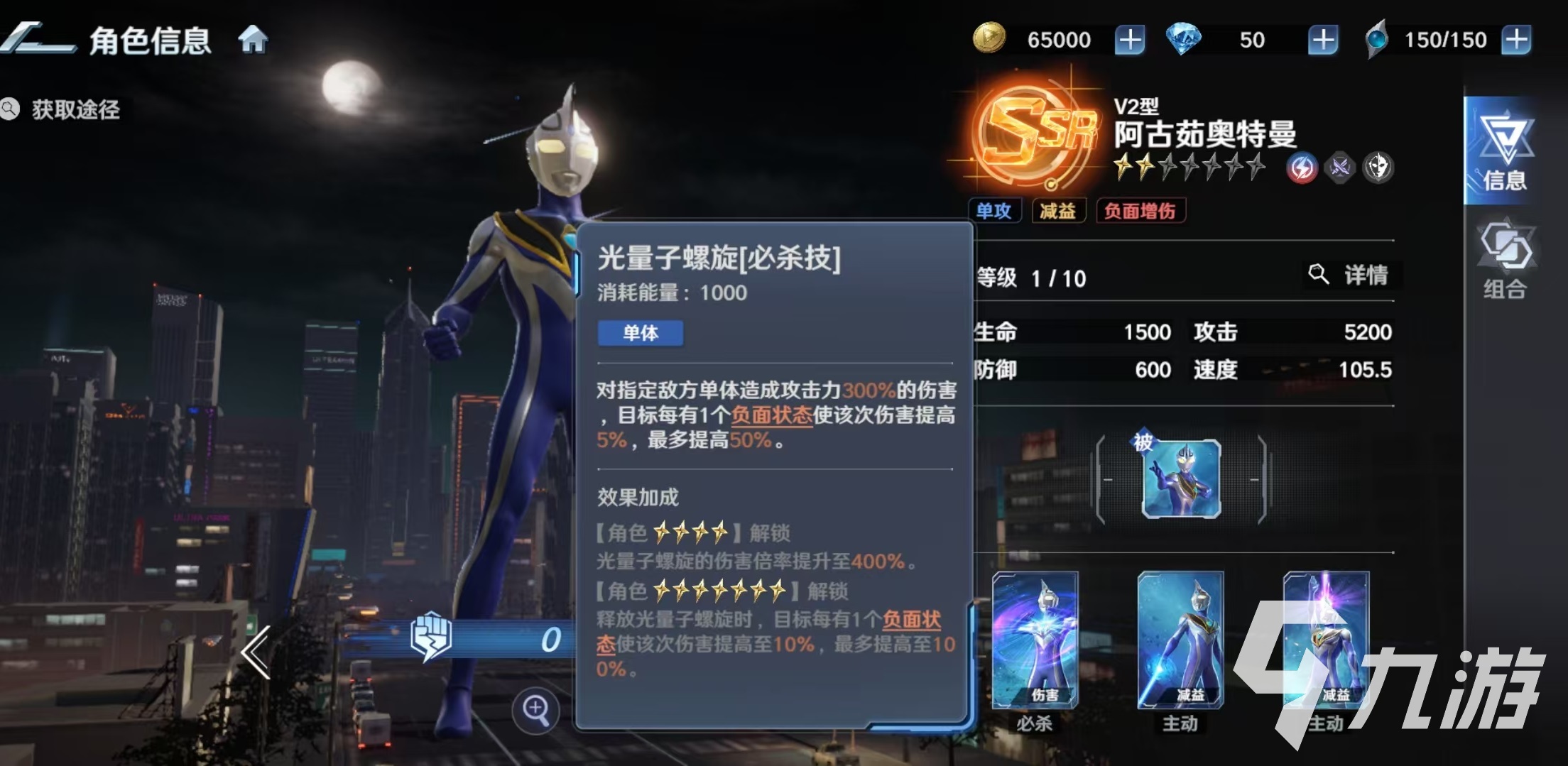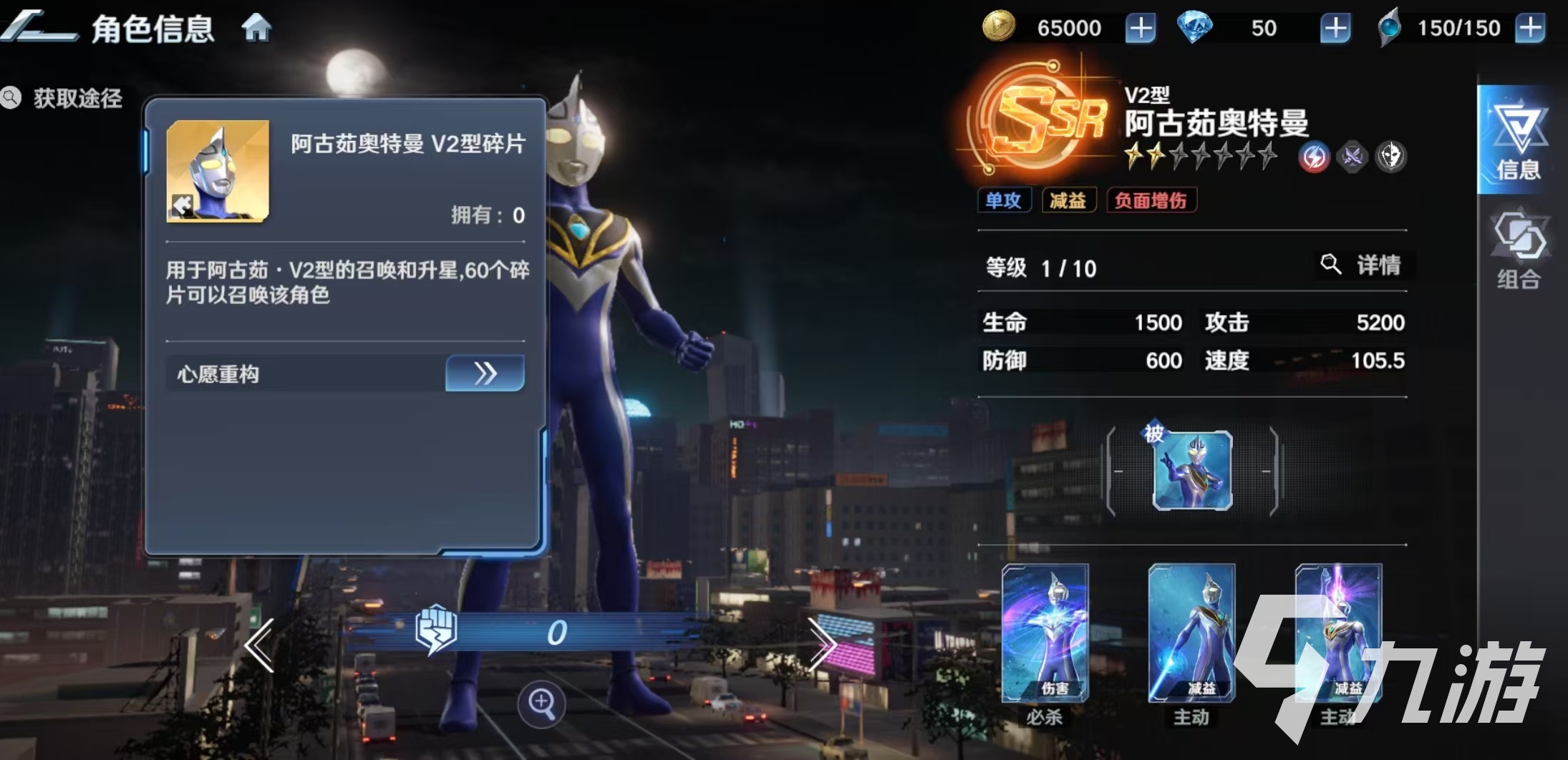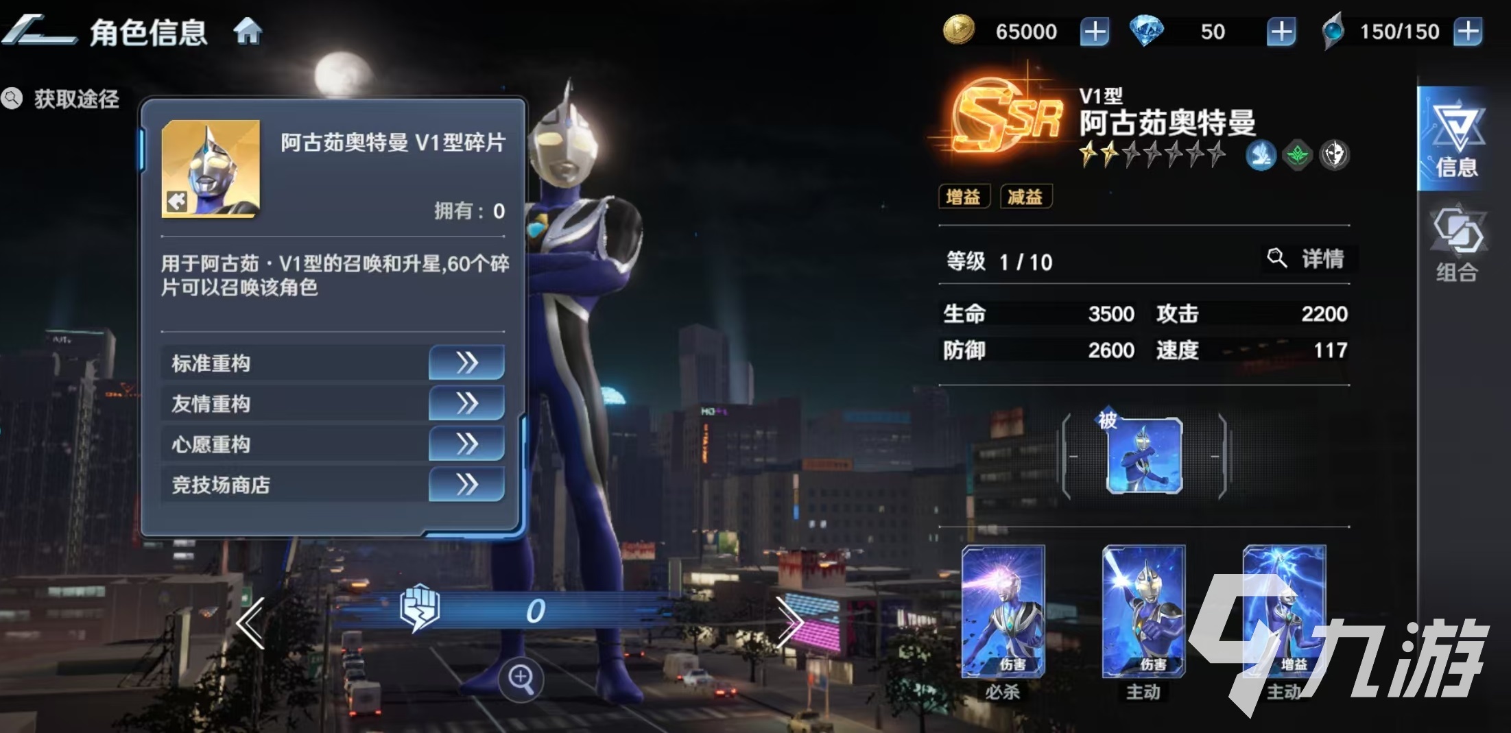 在奥特曼光之战士中,阿古茹奥特曼一共有两个不同的形象,分别是阿古茹奥特曼V1型,还有阿古茹奥特曼V2型,这两个都是属于SSR级别,但是在技能效果和获取方式上存在一定的区别。先来看一下阿古茹奥特曼V1型,获取途径比较多,包括标准重构、友情重构、心愿重构和竞技场商店这四个途径。这里的重构值得就是卡池抽卡,简单来说就是卡池中的标准池、友情池和心愿池,都能获得这个角色,还可以在竞技场商店中直接购买,所以获取相对稳定。