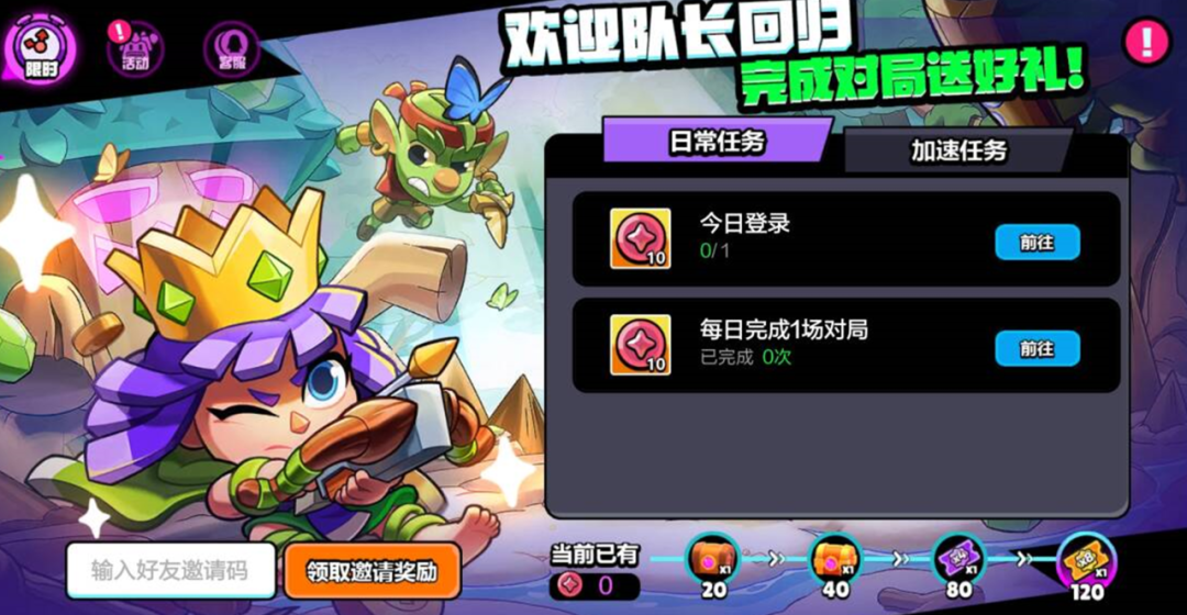 老兵回归立送稀有宝箱和史诗宝箱,完成每日对局任务即领8倍券!