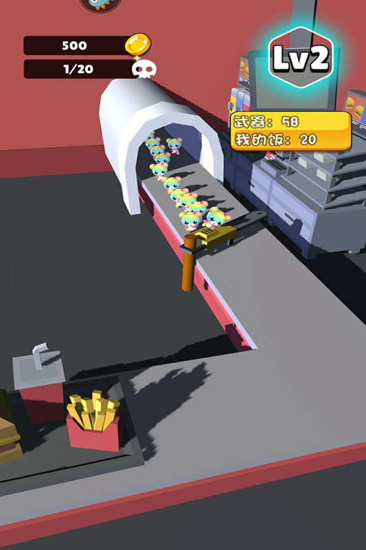 利用武器,赶跑要偷吃的小熊,可以升级装备,偷吃的小熊随着关卡的提升数量会提升,所以要升级武器,保护好自己的食物。画风可爱,操作简单,可以解压并且愉悦心情,是打发时间的利器。