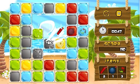 Beach Treasure is a simple and easy game inspired on games of jewels and diamond, but with some very cool differences, plus you can destroy groups of at least 3 jewels, you can also use items like bombs and dynamite strategically in order to earn more points and even increase over time.You will get the following items during the game:Dynamite destroys a jewel at a time.The bomb destroys the jewel that was planted and also the neighboring jewels.With the exchange item you can make the switch in position between two jewels.The destruction of the clock can give you many seconds when destroyed along with many jewels.You can also make combos to multiply the points, if you can do combos 7, you win multiple items from a pirate really cool.