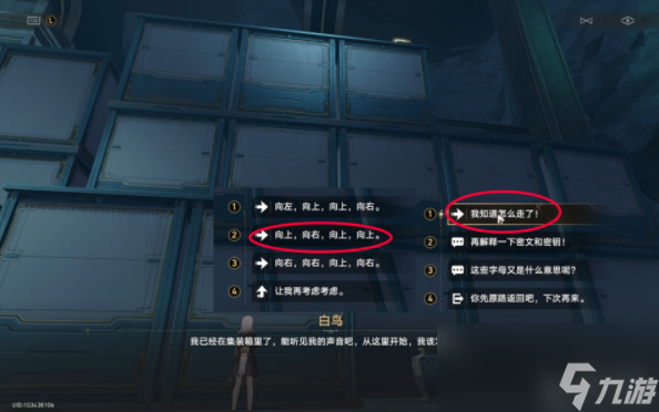 4、再之后的选项中分别选择「我知道怎么走了!」、「向上,向右,向上,向上」,等完成对话后即可获得成就。