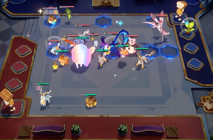 大家就需要对位去放置了,具体的方法就是按敌方精灵的位置去摆放,就比如敌方精灵将前刺客输出类型的精灵的位置放在了后排的对角位的时候,这个时候后排的精灵就可以放在另一个对角上或者和前排精灵换位,这么一来就不会被对位了,就是这个放置思路,大家需要根据场中的情况去站位。