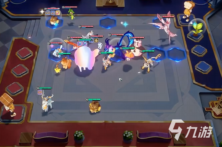 然后需要将输出类型的精灵放在后排,需要放在最后两排的格子中,辅助性质的精灵需要围绕这些输出性质的精灵去放置,具体的放置位置可以在棋盘两边也可以在中间位置,这主要是看精灵的类型。