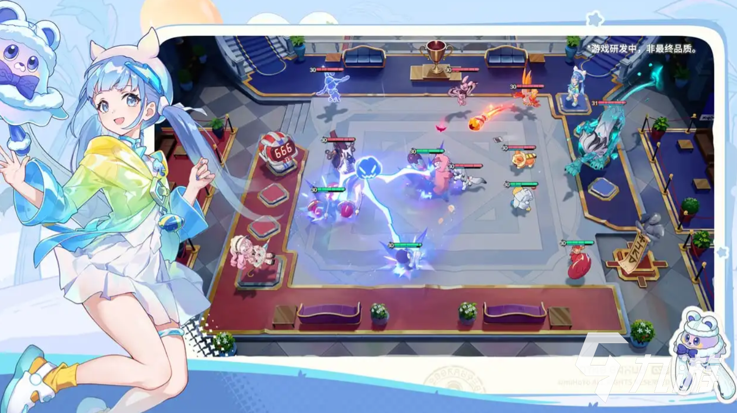 美宝同样也是一名副场主,但是因为年纪小,思维清奇可能并不清楚自己在担任副场主,她的“闪亮派对”会在战斗开始时,掷出2枚骰子,我方成员会根据骰子丢出的结果来获取到完全不同的增益,若能掷出2个相同的面,增益效果将会提升20%,掷出“甜蜜一击”会对随机2名敌人造成700魔法伤害,掷出的是“守护”会让护甲和魔抗提升12,是“呐喊”会让攻击力和魔法强度提升6%,是“催促”会提升6%的攻击速度。