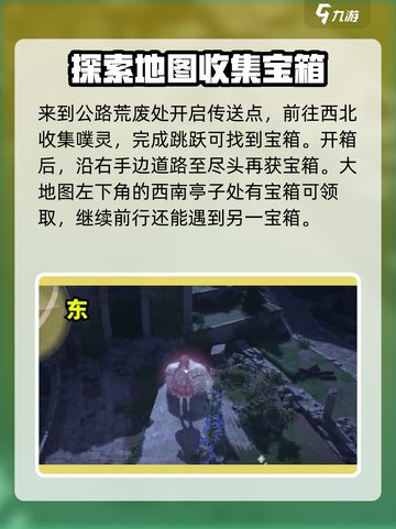 宝箱收集小能手来啦!🎉从特定位置出来左转就能看到第一个宝箱,看完开场动画后来到新苑花街,右手边小路左边还有宝箱哦!继续往前,公路荒废处开传送点后往西北跳跳噗灵,上面也有宝箱🎁。右手边道路尽头再一个,大地图左下角西南亭子旁别错过!最后,去西南山洞,里面藏了3个宝箱,记得绕到悬崖后方找最后一个哦!🙌