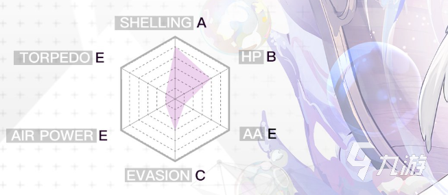 六维属性方面炮击A、耐久B、机动C,其它都是E,是超稀有的主力风帆舰,也就是常说的后排金大炮,但与常规战列战巡相比,风帆的耐久较低,并且没有防空武器和防空属性,因此生存压力很大,输出则主要靠技能和主炮增益。