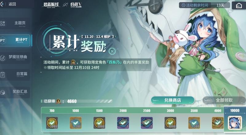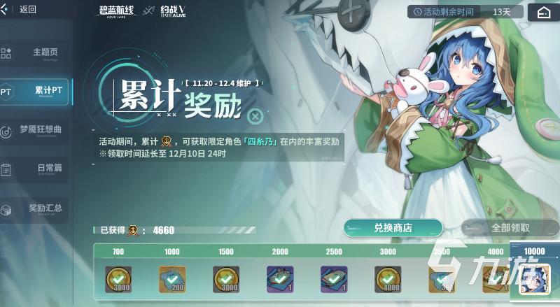 关于碧蓝航线四糸乃怎么兑换就给大家介绍到这里,四糸乃不用兑换,也不用建造,是通过出击活动共斗关卡或者完成活动日常得到的活动点数获取,累计到1万点数就可以获得一只,后续还可以获取多只,如果要省突破狗粮的话可以多刷一些点数。