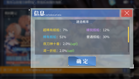 折纸只能通过限时建造获取,在本次DATE A LANE活动中,玩家可以通过消耗魔方从限时卡池中概率获取折纸,基础出货率是2%,没有保底,但考虑到碧蓝的魔方获取相对来说较容易,大多情况下六七十次建造是能出的。