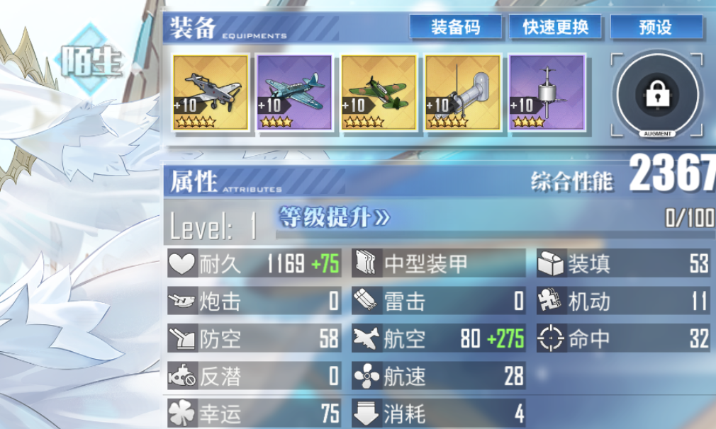 2技能入战提升自己航空、命中属性,入战20秒后发动炮冠弹幕。3技能战斗中前4次受到的伤害降低60%,入战受到伤害导致耐久低于50%的时候回复自身20%最大耐久,并且清空被侦测条。飞控是3战2轰3鱼,总的来看是一艘偏向弹幕输出,生存也不错的航空,机制时期在主线开荒图也有不错就业空间。