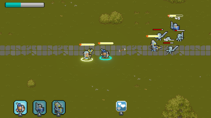 游戏中,你将扮演牧师,保护其他三位英雄,讨伐邪恶的巫妖。在游戏中,选择你要自动跟随的英雄,并点击按键,对其释放增益法术,保护三位英雄,在与怪物战斗后,还可以升级技能,选择合适的技能,并在合适的时候释放,对成功与否至关重要。
