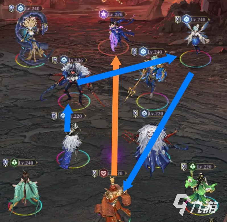 需要一定的抽卡运气,典型的“强控爆杀队”。阎罗王的开局钩子能直接点杀敌方核心,控到死一点也不夸张。涅墨西斯依靠对角穿梭补伤害,阿努比斯则具备高爆发与残血收割能力,三者的组合经常能在开局8秒内打崩敌人。尤其适合零氪玩家在精英关、塔类副本中“逃课”,因为只要核心C位被控到死,剩余敌人再高战力也能被慢慢磨掉。