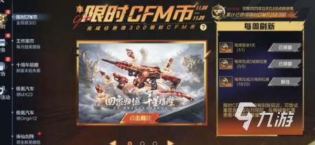 如果大家有条件是推荐大家去获取的,最后在活动最后哦还会推出了一个限时cfm币的活动,该活动中玩家只需要完成每天的签到和挑战任务就可以领取到cfm币,这些货币是商城货币可以帮助大家在商场中去购买枪械皮肤等道具,这就是本次联动活动的全部内容了。