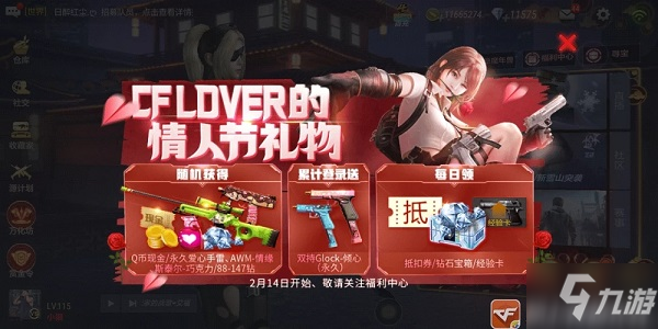 下载游戏:http://www.9game.cn/cfsy/ 情人节到啦,CF手游也推出了最新的福利活动,爱心手雷、AWM-情缘斯泰尔-巧克力、双持Glock...[详情]