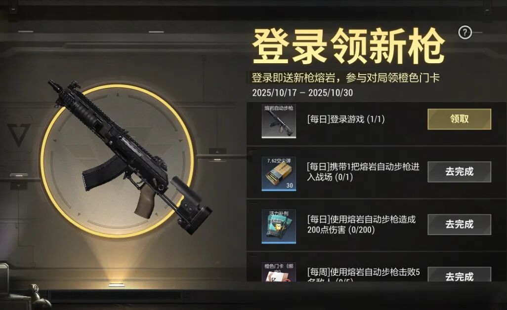 10月17日~30日期间,参与登录领新枪活动