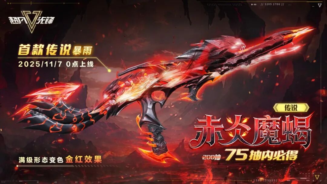 赤炎魔蝎——首款传说【暴雨】浴火登场!75抽必得,11月7日0点,踏入战场,一击定冕!