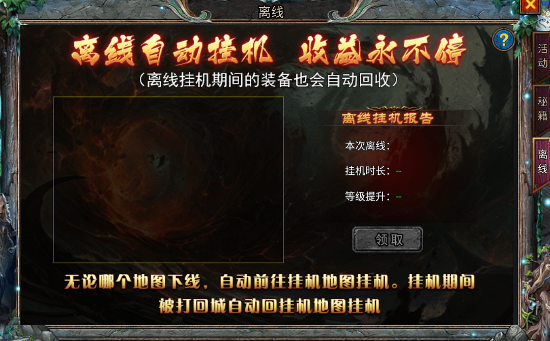 游戏还可以离线后自动闯荡江湖获取收益(离线挂机期间装备自动回收),空闲时再集中精力处理其他游戏内容,如打副本、做活动等,合理安排时间,让挂机收益为角色发展持续助力。