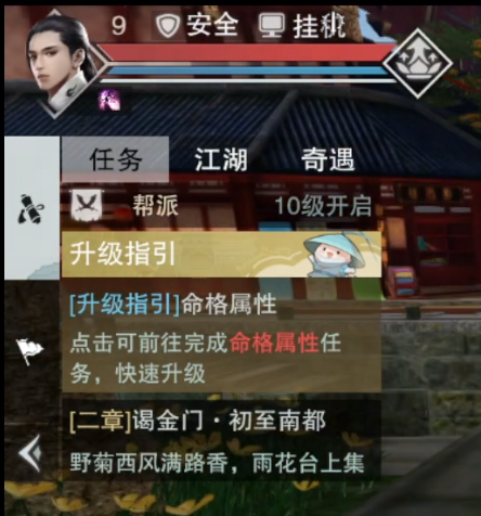 对于萌新少侠,“升级指引”任务则会出现在左上角任务栏置顶。每日完成引导内容即可快速升级,拿满奖励,稳步提升修为。