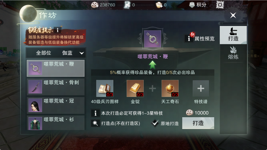 其中,装备打造将支持“原地打造”,无需前往特定区域。同时,蓝色特技的获取概率小幅提升,但其他各特技类型出现概率均衡,养成更省心。