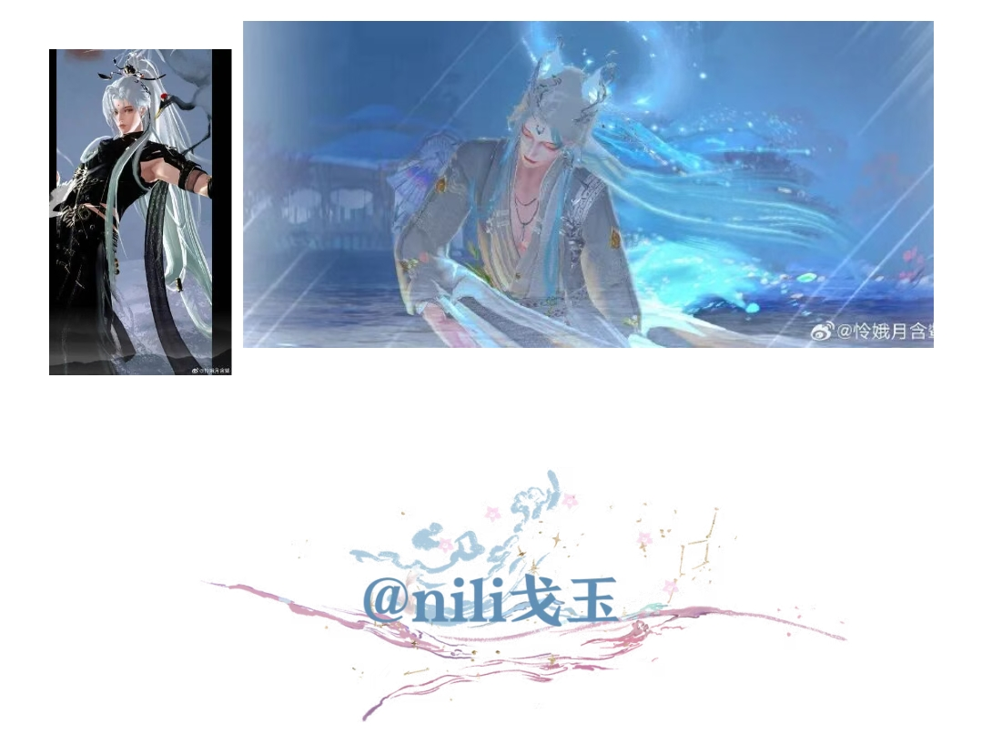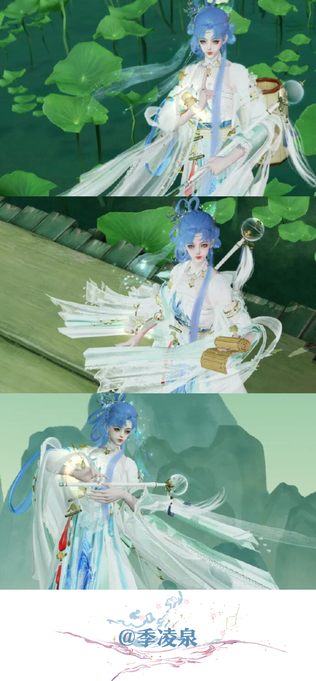 色如雨后天青,荷旁近水呈碧,少侠@李泽言的门牙将头发染色灵动的蓝,在池水与山川之间摆弄拂尘,出尘的气质中含了一抹欲说还休的意味,实在令小四看了也不禁沉醉......