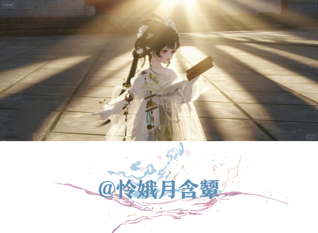 纯白无瑕的疏朗少女,轻点额头低眉沉思,宛如奇真绘墨里走出来的蟠桃园仙子。来自小红书的少侠@上天落地对照片进行加工,建模融于水墨,恰应时装·奇真绘墨的涵义,造就了一种跨越次元的美。