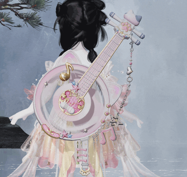 拨动琴弦,阮身便流淌起甜梦,演奏时共振出粉红声波,那残影上似乎有带电的呼噜声劫持着少侠所有的听觉神经!