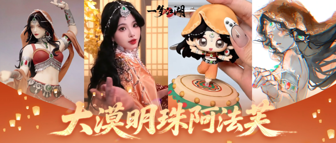 少侠@予竹川将平行服鲜艳靓丽的阿法芙带出了江湖,小阿法芙圆睁着明亮的眼眸,伸出手被屏幕前的少侠轻轻握住,笑靥如梦;一身异域华裳闭眼朗笑如沙漠炽阳的少女,周身每一寸光芒都洒满蓬勃生机;而后的她垂眸浅笑,胸前一束繁花绚烂,优雅中蕴藏着照亮世间的温暖与正义——每一次笑,都是她送给少侠的光。