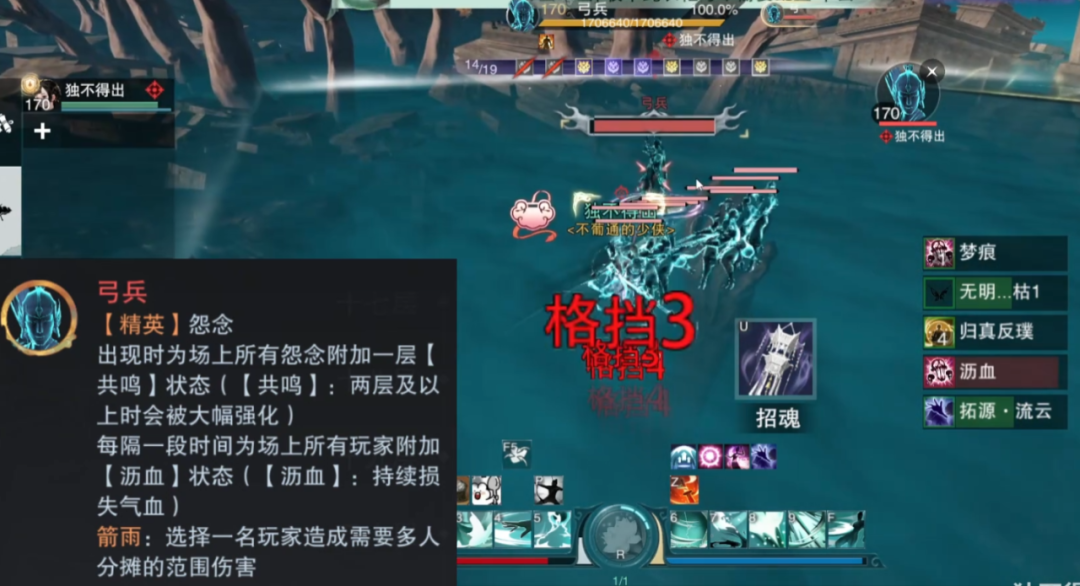盾兵:锁定坦克职业释放环形范围伤害,需迅速远离;同时召唤减伤阵法,需将队友拉出范围避免承伤降低输出效率。