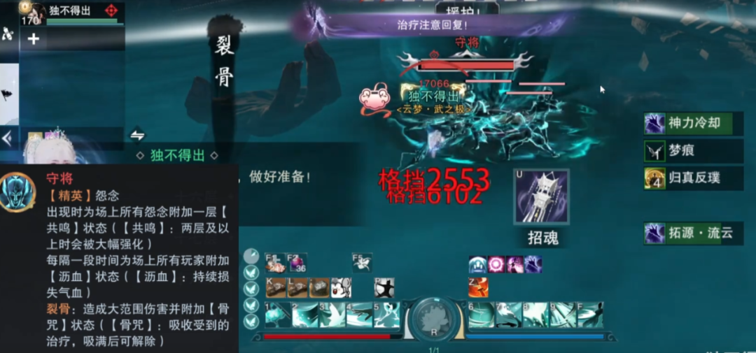 英魂:全场黄光增益小怪、大范围击退、破盾阶段(需及时打破否则造成高额伤害)、以及释放持续地火区域,踩中会受到高伤。