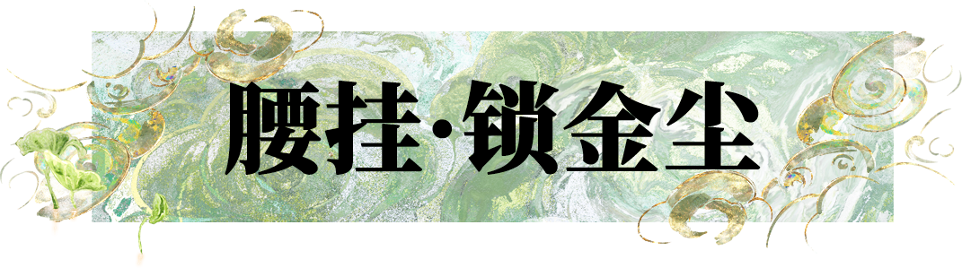以古时人们喜爱的单品方形包包为灵感,腰挂·锁金尘宛若从旧卷繁华中走来,廓形雅正,气质脱俗。包体选用素白为底,其上细密铺陈金色纹样,光华流转。顶部的金色扣件做工精湛,包带采用玉珠流苏,少侠们可以提着它行走,它将随着动作轻摇,平添灵动。