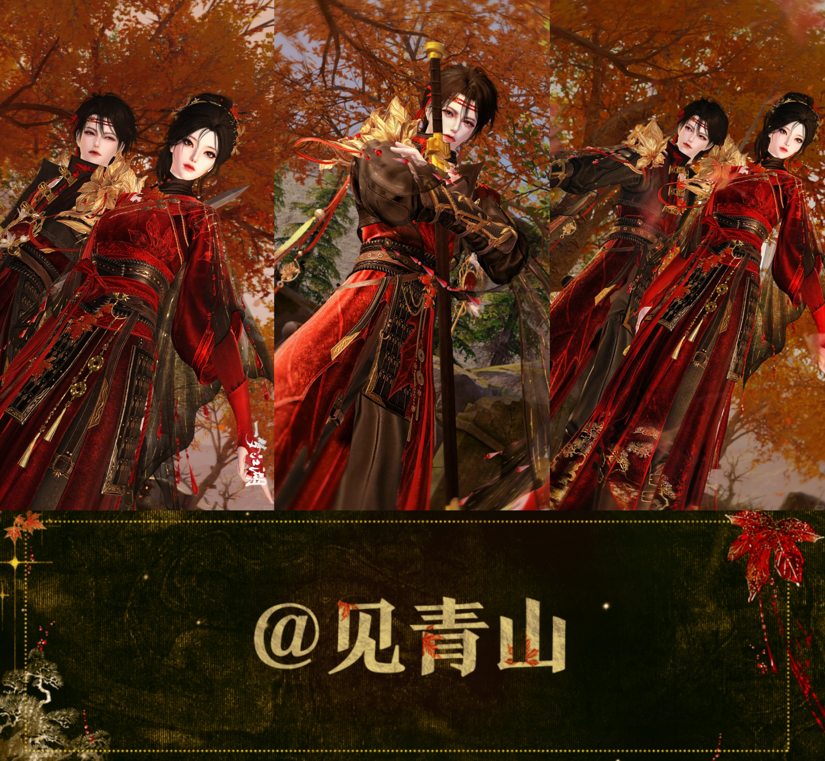红衣猎猎,枫色灼灼,少侠@桅梟 的双人花木兰主题时装“写真”简直宿命感拉满。你引弓如月,我凝眸如星,无需言语,这擦肩一瞬的张力,便是英雄本色最好的注解!