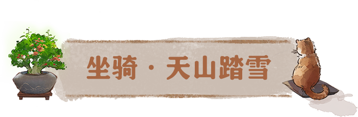 悄悄告诉大家,这只神态灵动的雪豹双人坐骑·天山踏雪,还有一个拿手绝活哦!那就是——载着少侠跳高高。少侠不妨与亲友同骑,凌空跃起,感受雪花飘洒于空中的华美与肆意~