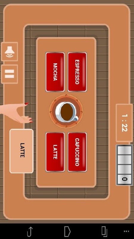 Serve customer orders for soft drinks with accuracy and speed. With the start of the game, the player is required to serve customer orders by selecting the correct soft drink choice and then serve the drink by drag and drop the cup to the hand proposed. While requests are successfully served, more points are added. If a wrong drink is selected, or the serving is not accurate, then points are reduced. By selecting "Pause", the user can freeze the game, perhaps to have a soft drink of his own, while pressing "Play" the game resumes. While time passes, more and more drinks become available for serving. Each drink offers different number of points for adding or subtraction to the total number of points collected by the player. As in real coffee shop, while customer orders are added the serving time is reduced.