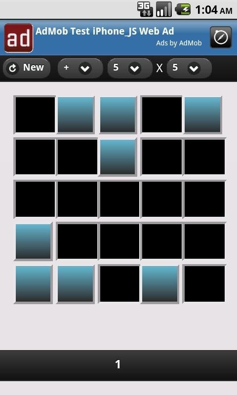 This game is similar to lights out game. Your mission is switch off all lights on the board.* Touch a light to change its status and that of its neighbors.* You have four differents on/off patterns: + (clasical), x, *, O.* You can select the number of rows and columns of the board (3-8).