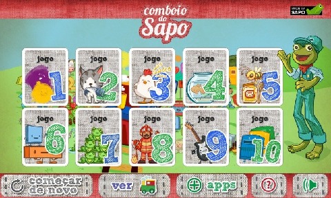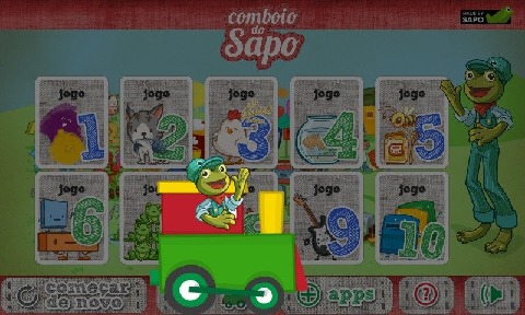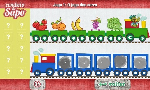 No Comboio do SAPO os seus filhos poderão aprender enquanto brincam. Em 10 jogos simples mas ricamente ilustrados os mais novos vão aprender a contar, associar cores, reconhecer os sons dos animais e dos instrumentos musicais, reconhecer as formas geométricas e outras atividades.O Comboio do SAPO é ilustrado por desenhos feitos à mão e cada jogo completado com sucesso revela mais um pouco da divertida imagem de fundo. A aplicação inclui ainda instruções e menus narrados para que as crianças possam usá-la sem dificuldades.Esta aplicação destina-se principalmente a crianças em idade pré-escolar.Entre com os seus filhos no Comboio do SAPO e divirtam-se em família!O SAPO, TMN, MEO, PT NEGÓCIOS E PT PRIME são marcas do Grupo Portugal Telecom.