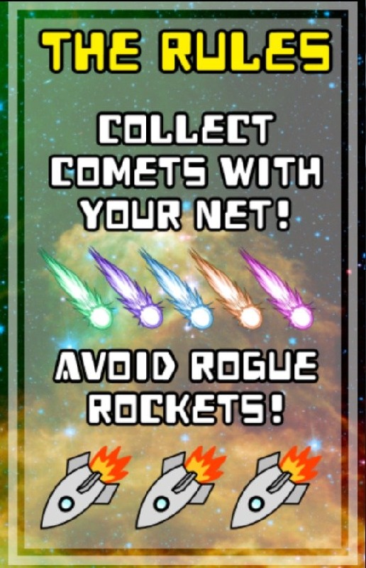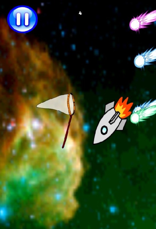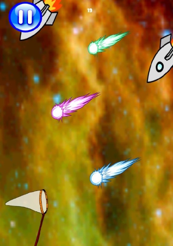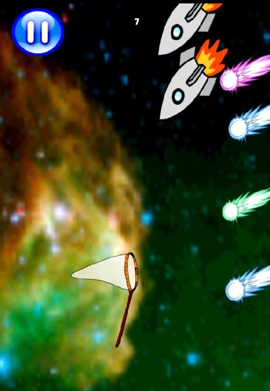 Comet Catchers is a free space themed casual game for those that want to be among the comets in space. It features beautiful comets that give you points and a erous rocket that will bring you down to earth!Comet Catchers, one of the very best space comet games you'll ever play, has very simple rules: blue comets are worth one point, green comets are worth two points, and purple comets are worth three points... But watch out for the rocket attack or your dreams of the ultimate comet collection will surely be dashed!Comet Catchers was designed by a team of comet catchers that wanted their vision to be brought to the stars. This team wanted to command the galaxies with their comet game.So enter epic hyperspace, and enjoy the great free comet game for kids, adults, and the whole family! Watch out for the rocket booster, and play Comet Catchers today!