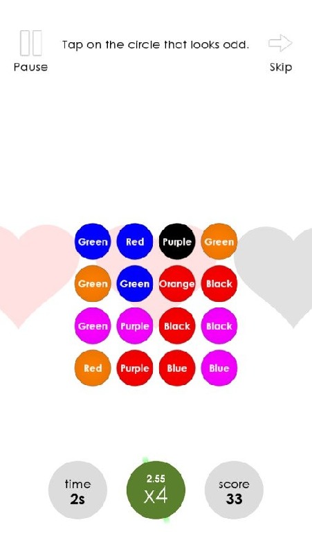 From the creator of the addictive and popular game Contrast, comes Contrastic, a game that challenges both sides of your brain to work as quick as possible.The rules are simple: Tap on the circle that looks odd compared to the others. Maybe it has a different color, or it has a wrong label for its color, or maybe even the right one! Or maybe the spelling is incorrect? You should figure it out before your time runs out.Mark your intellect on the global leaderboard and beat everyone's record to become the world champion. Are you the artest person ever? This is the place to find out!