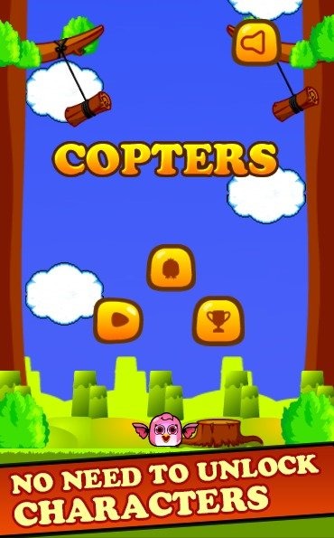 Tap to fly left and right and avoid obstacles to make score.Six different copters. No need to unlock .Select copter and fly.