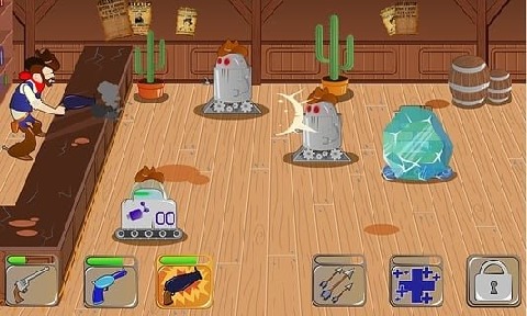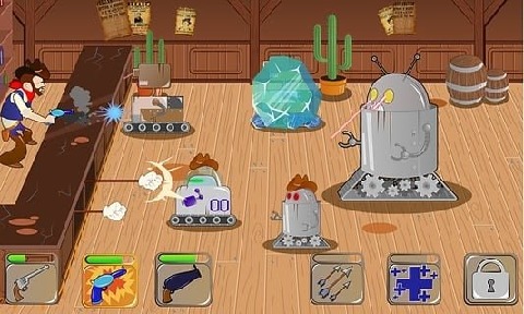 争取你的生活,拿出你的手枪在Cowboys VS Robots。全副武装的牛仔,并在此拍摄的游戏推开一个机器人入侵命令。Cowboys VS Robots为整个家庭是一个有趣的游戏!仅推荐用于...大家好!CARACTERISTICS- 100水平- 收集300颗星- 最好成绩- 触摸屏幕开火怎么玩?你的牛仔被放在前面...