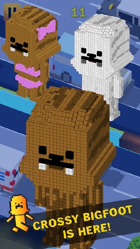 CROSSY BIGFOOT IS HERE!THIS GAME IS ADORABLE, , RETRO, AND AWESOME AT THE SAME TIME!IT'S CLASSIC PIXEL ARCADE AT ITS BEST! IT'S THE FUN ADDICTING GAME EVERYONE ...