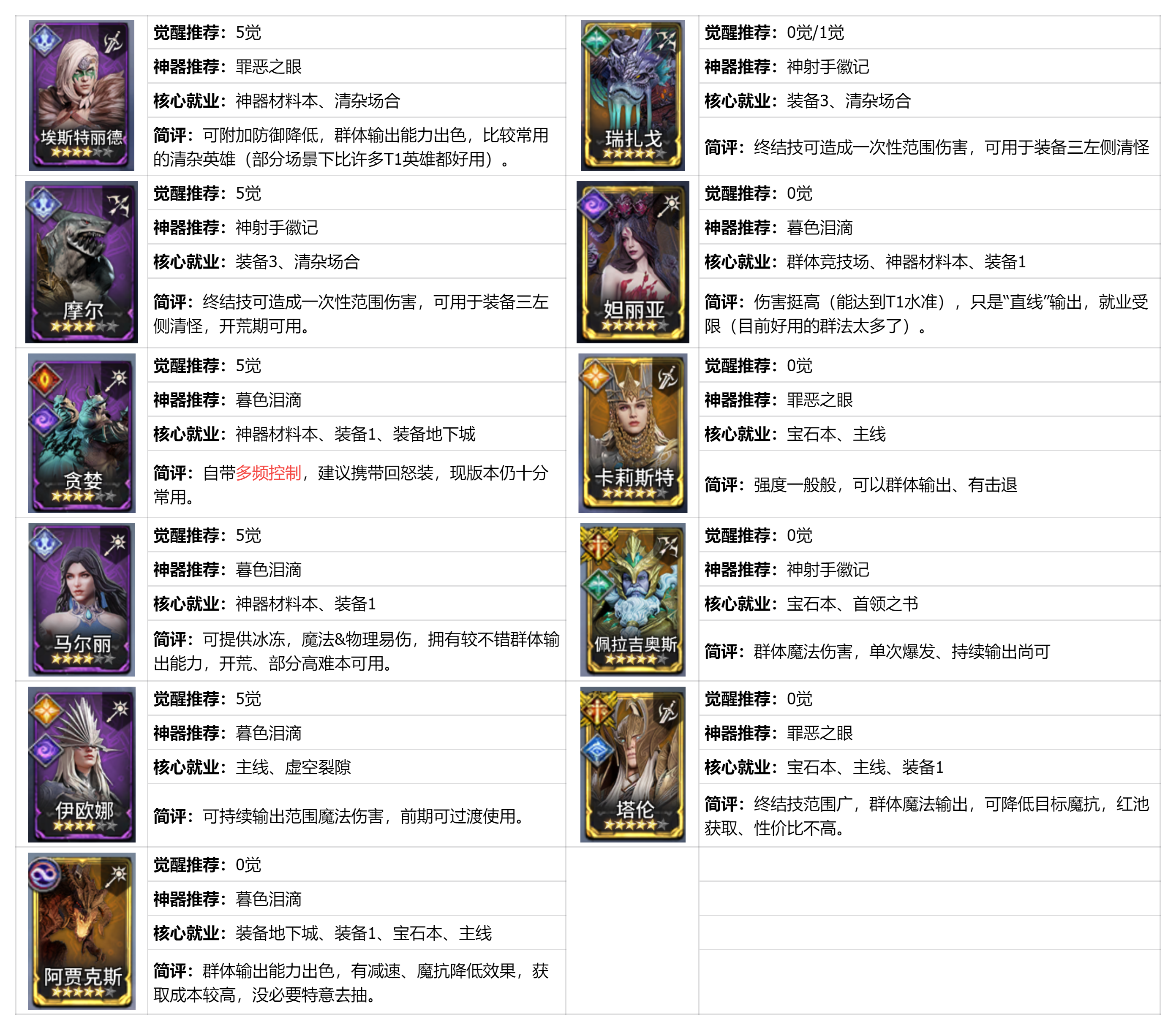 目前来说,瓦蕾亚、英格丽德是真正意义上的T0人权,只不过从PVE的维度考虑,群体输出英雄有大量的可替代选项,这两位英雄主要价值是群体竞技场,拥有统治级别的地位。