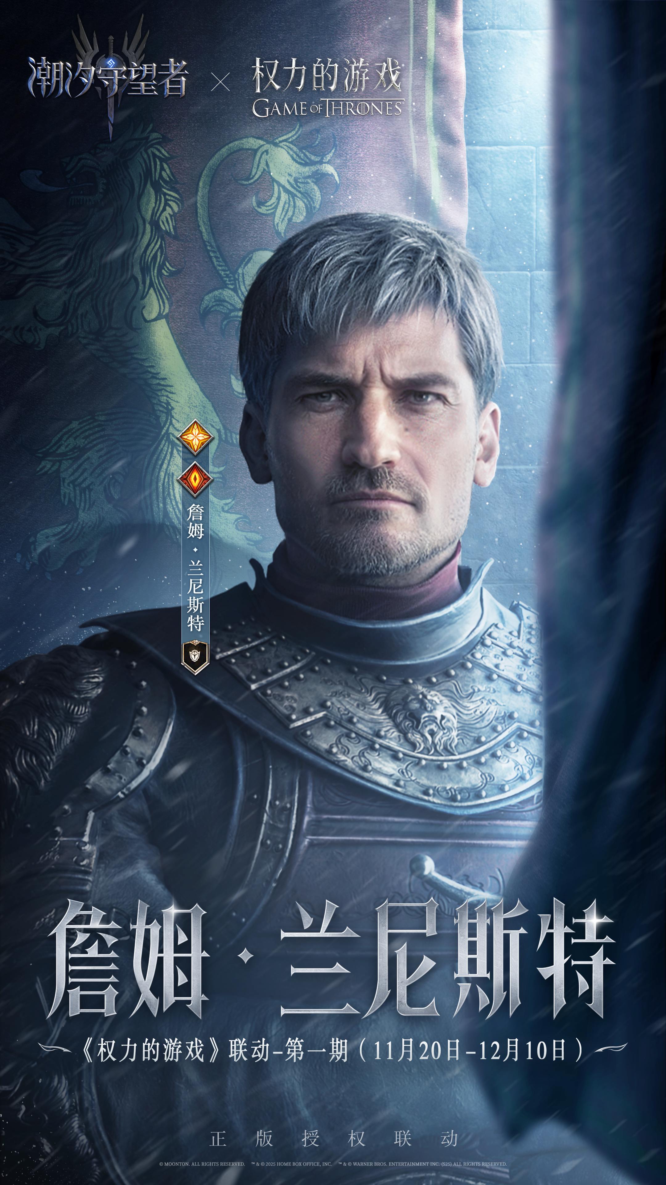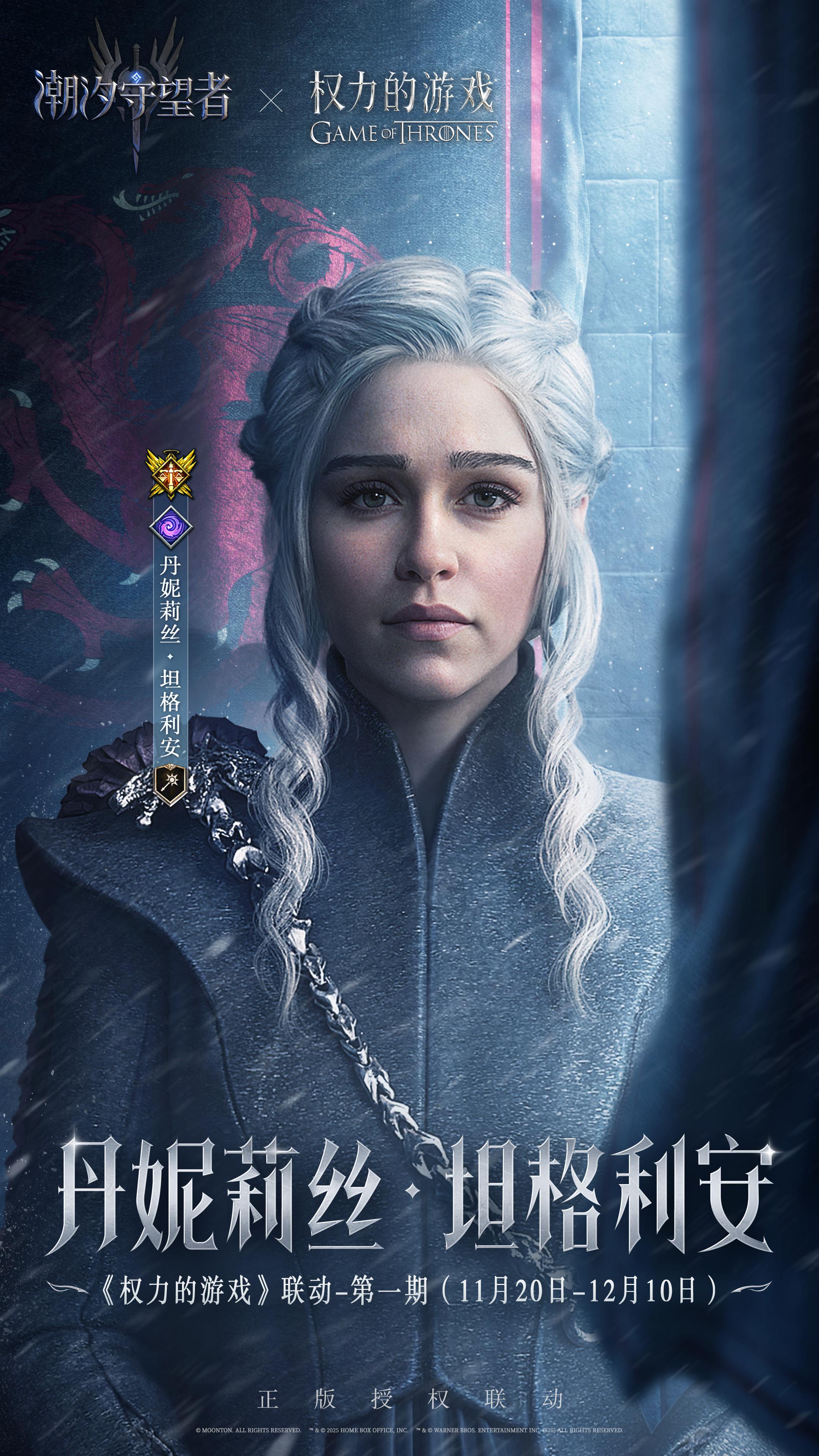 《潮汐守望者》x《权力的游戏》正版授权联动正式限时开启!11月20日起,丹妮莉丝·坦格利安、詹姆·兰尼斯特和提利昂·兰尼斯特将在《潮汐守望者》中陆续登场!联动期间各种限时活动及福利内容将陆续上线!指挥官们,让我们一同进入泰亚大陆,迎接联动庆典狂潮吧! 新手福利价值150抽!绝版皮肤、五星传说、自选神器免费领!周年庆期间继续加码!